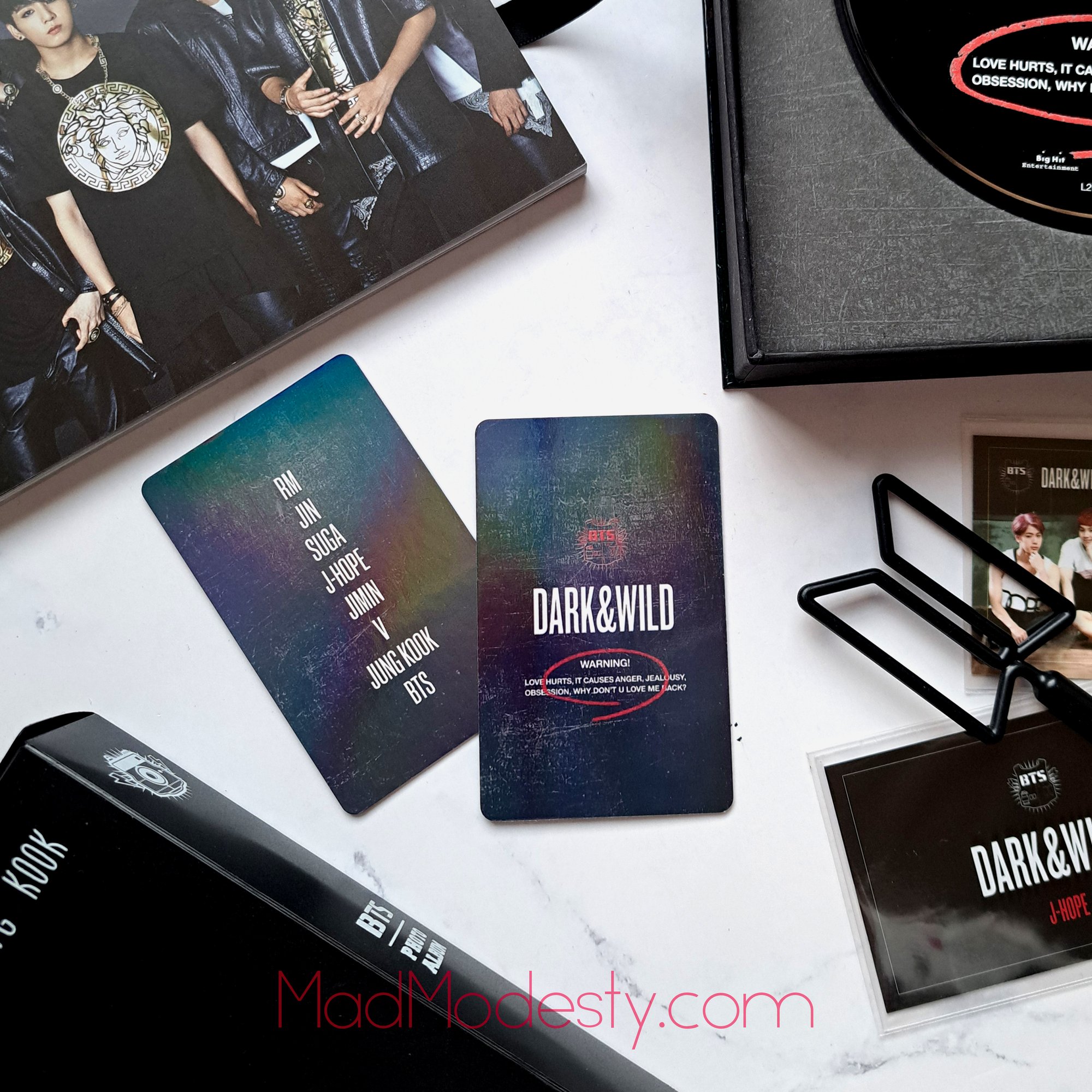 A tribute to BTS’s first full album era: bold, rebellious and unapologetically loud. This collector’s card captures the raw energy of Dark & Wild with a rainbow laminate finish that shifts in the light, just like the real album.