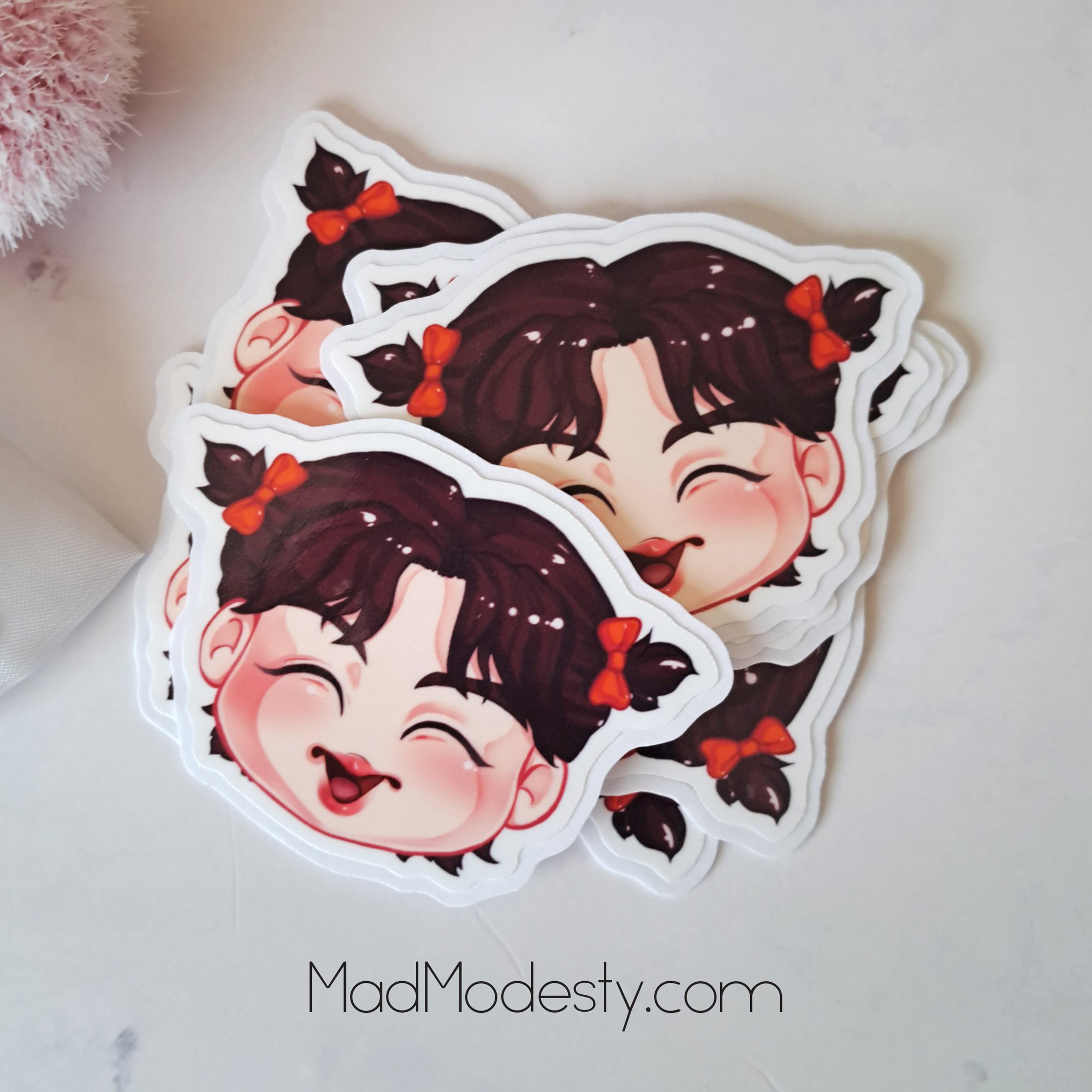 Add a sprinkle of worldwide handsome to your day with this adorable Jin-in-pigtails sticker! 💜